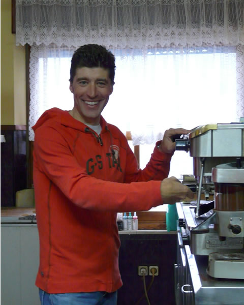 Chechu, very relaxed, was a perfect host, worked the coffee machine himself, preparing our drinks, and poured Coke for the girls.