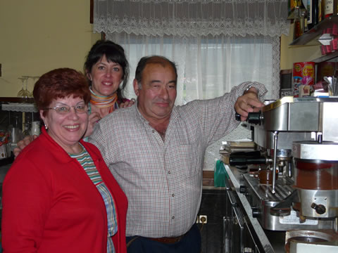 Finally arrived. Chechu with Nicky and Katy outside Bar Rubiera