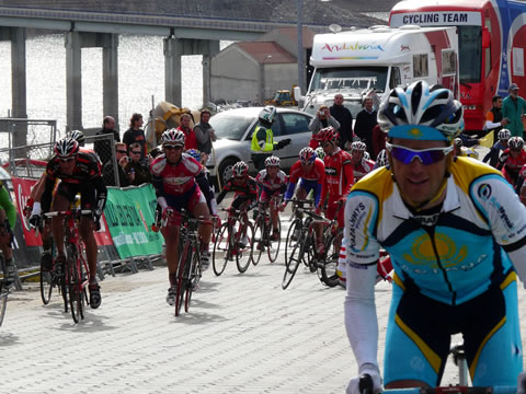 Our attention was focused on that incident and after the fallen cyclists got up to finish the race it seemed it was all over and we started turning our backs to the road, when suddenly two Astana riders passed by and I recognised Chechu and Benjamín and shouted at them. Chechu turned round and waved at me smiling. They were just enjoying the successful end of the race for their team.