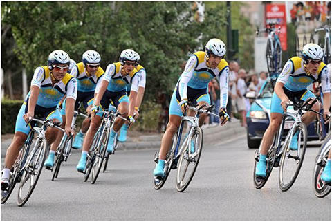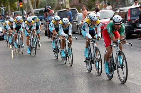 Team Astana posted a time of 8'35", finishing 9th overall, just 14" behind winners Liquigas.