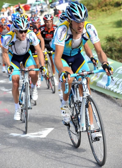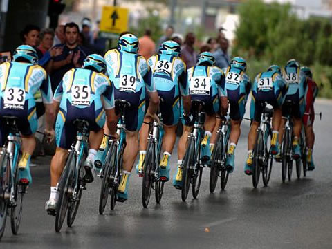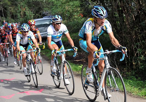 Astana dominated, with plenty of hands to share the work. Vaitkus, Paulinho, Klöden, Noval, and Bazayev took turns on point, sheltering Contador and Leipheimer until the final beastly kilometers.