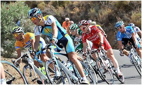 No breaks succeeded but the monotonous promenade around Jaén's ring road was quite interesting as a result. Even team leaders appeared on the front. Popovych got away for a while, even Contador appeared for a moment. Always there was Valverde, instantly recognisable with his national stripes.