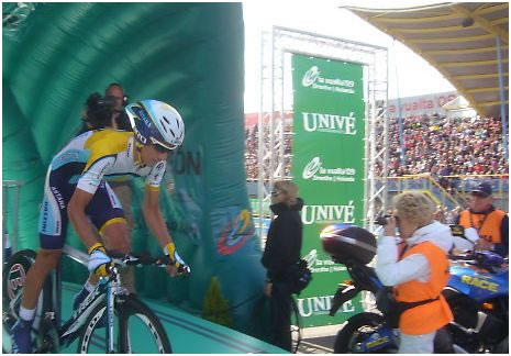 We watched for forty minutes before sighting an Astana jersey. Fans of Astana must be ever patient at this Vuelta. The team is rolling along within the peloton, safe and sound. Although Zubeldia lies in ninth place overall and looking strong, Vinokourov is the lurking presence. You sense that he's waiting to do something extraordinary.